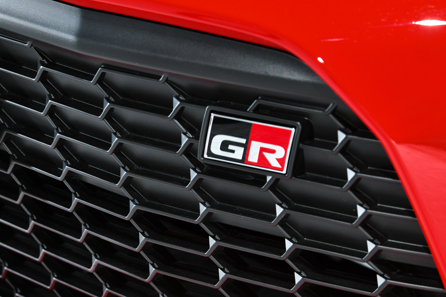 さらに、フロントグリルにはもうひとつ大きな特徴がある。それは、新たにGR専用の「Gメッシュ」が採用されたことだ。松本さんによると、「六角形のモチーフの一部に “あや”を付けることで、アルファベットの“G”を表現しました。今後は、GRスポーツなどにも採用していく予定です」とのことなので、これからGRを名乗るクルマには、順次このグリルがフロントを飾ることになりそうだ。