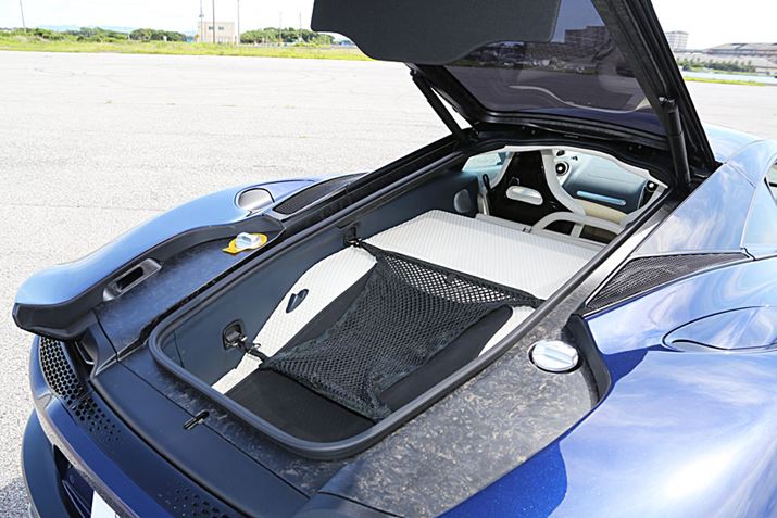 マクラーレン「GT」には、リア(上画像)の収納スペースのほかに、フロントフードの下(下画像)にも収納スペースを備えている