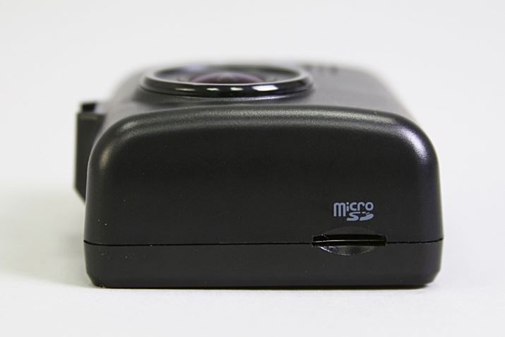 本体背面には、2.4インチのフルカラーTFT液晶と、下部に各種操作のためのボタンが配置されています。物理ボタンは、横並びに押しやすく配置されており、ボタンの種類もわかりやすく表記されています。たとえば、ボタンが本体側面の見づらい位置にあったり、タッチパネル式になっているようなドライブレコーダーでは、操作を間違えてしまうこともたびたびあるのですが、Y-4Kは細かな操作など使い勝手の面までよく考慮されているように思えます。