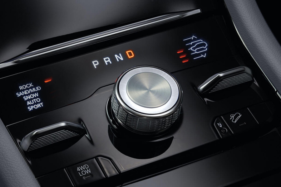 新型「グランドチェロキーL」のセンターコンソールには、新たに金属製のシフトコントローラー「ロータリーシフト」が採用されている