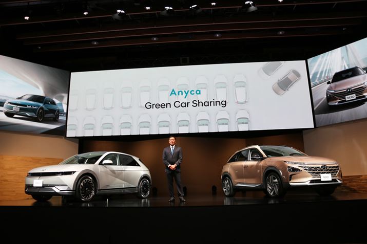 もうひとつ、展開予定の新たなビジネスモデルが、カーシェアプラットフォーム「Anyca(エニカ)」との協業だ。まず、2022年内にアイオニック5を100台、ネッソを20台、Anyca Officialシェアカーに投入する。ちなみに、アイオニック5は2022年2月下旬からサービス開始予定という。なお、キャンペーンとして1時間無料でシェアできるキャンペーンが2022年5月末まで実施される。