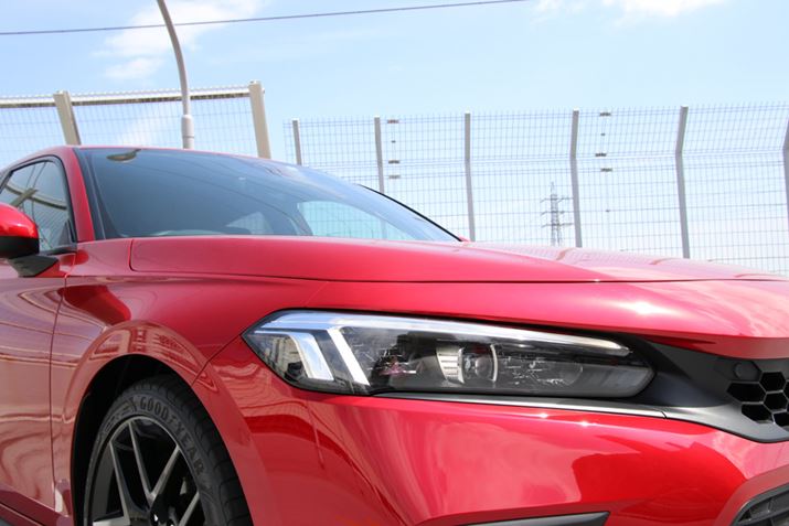 近年のホンダ車のデザインは、秀逸なものが多いと感じる。新型シビックも、サイドに通るきれいなプレスラインとともに、上下の面構成は清潔感にあふれたものだ。さらに、リアフェンダー周りのボリューム感の表現なども見事で、インテリアも同様に質感がとても高く、ステアリングホイールやスイッチの触感に至るまで、こだわりをもって開発されていることを感じ取ることができる。また、たとえば空調関係の金属調のスイッチであれば、そのクリック感も金属的な感触であったりと、違和感を覚えさせないところまでよく考えて作られている。