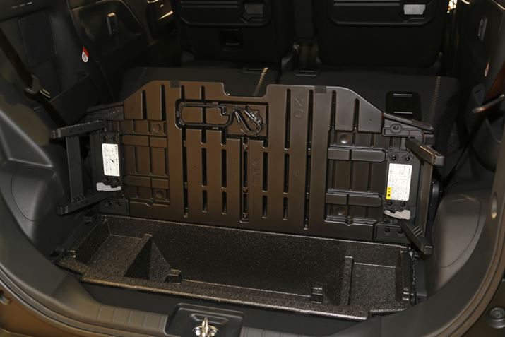 また、ラゲッジルームの天井にはルームランプが新たに追加されており、右側面にはUSBソケットも標準装備されているなど、アウトドアに適した仕様となっている。ちなみに、ラゲッジルームには「上下2段調節式デッキボード」と呼ばれる新たに採用された機構が備えられているのだが、それについては後述したい。