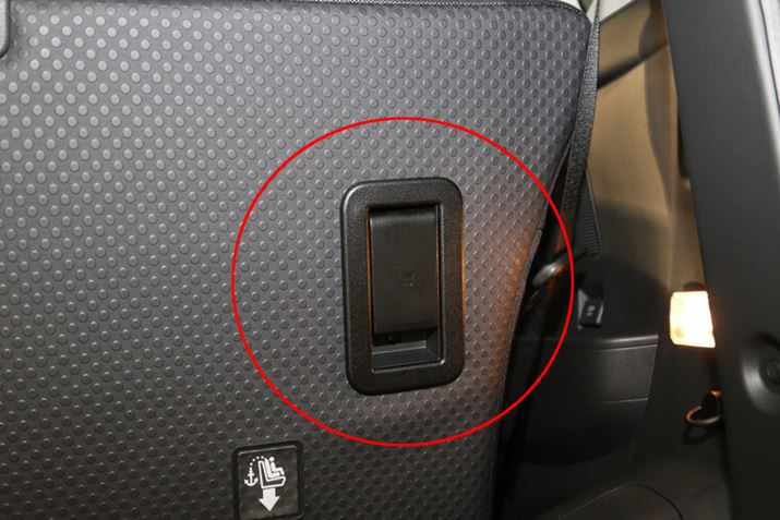 今回の改良によって、リアシートの後ろに「スライドレバー」が装着されたので、ラゲッジルームからリアシートのスライドが操作できるようになった