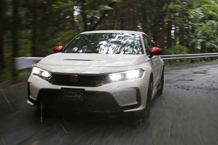 「シビックタイプR」は、濡れて荒れた路面という悪条件下であっても、4輪がしっかりとグリップしながらコーナーリングしてくれる