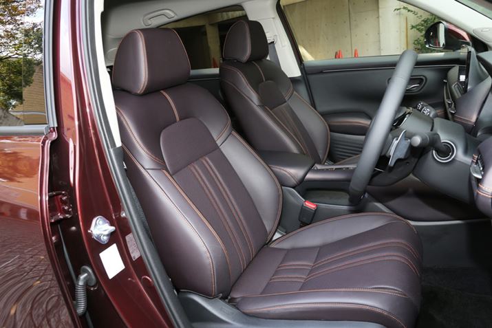 水平とシンメトリーが強く意識された骨格は、決してスタイリングありきでできあがったデザインではない。たとえば、センターコンソールやドアに施されたニーパッドは、コーナーリング時には足を添えることで下半身をしっかりと支えてくれる形状になっているなど、デザインと機能性をうまく融合させている。そのうえで、「どの席においても、乗り込んだ瞬間にZR-Vでしか味わうことのできない色気を感じていただければ」と、インテリア全体に込めた思いを語る。