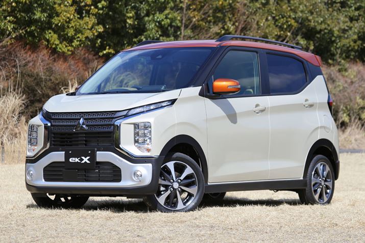 ガソリン車の三菱「eKクロス」(上)と電気自動車の「eKクロスEV」(下)。その外観は、ほとんど変わらない