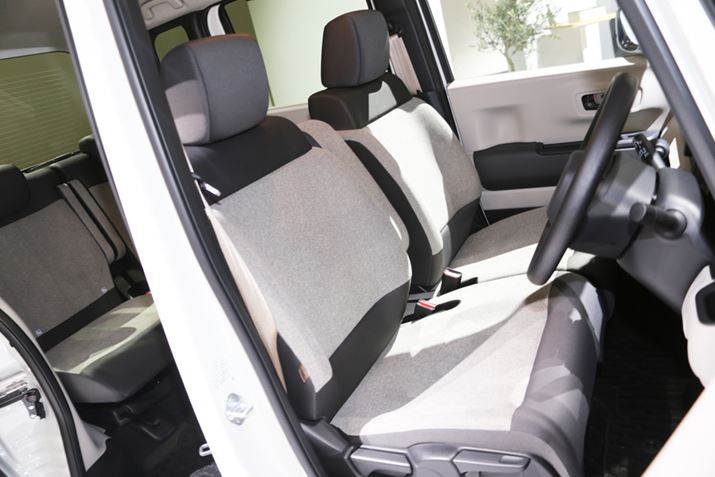 新型「N-BOX」のフロントシート(上)とリアシート(下)。シート生地に変更が施されている