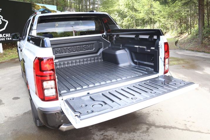 まずは、新型「トライトン」のボディタイプについて。2列シートを備える「ダブルキャブ」、1列シートの「シングルキャブ」、フロントシートの後ろに荷室が備えられた「クラブキャブ」の3種類があるのだが、そのうち日本へ導入されるのは「ダブルキャブ」になる予定だ。
