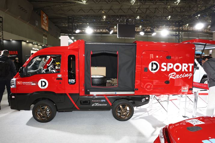 ダイハツは、「東京オートサロン2025」において「モータースポーツ」と「地域貢献」という2つの軸でブースを演出している。
