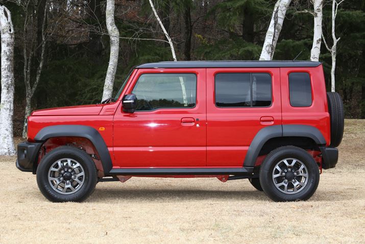 5ドアの「ジムニーノマド」は、3ドアの「ジムニーシエラ」をベースに開発されている。「ジムニーノマド」の全長(3,890mm)は、「ジムニーシエラ」よりも340mm長い。全幅(1,645mm)は、「ジムニーシエラ」と同じだ。全高(1,725mm)は、「ジムニーシエラ」よりわずかに5mm低い。