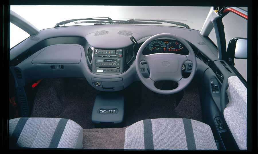 私もこのユニークな機構を持った初代「エスティマ」に飛びついたひとりです。当時、育ち盛りの子ども2人がいて、冬はスキー場へ月に2度ほど通っていたため、その足にこの「エスティマ」は最適と考えたからです。実は、すでに「マスターエース」(「タウンエース」の双子モデル)の4WD車を所有していたのですが、どうしても商用車的な印象は拭えず、走りも乗り心地も不満を感じていたところでした。そんななかで「エスティマ」が登場し、そのコンセプトに一目惚れ。確か、実車を見に行った初日に速攻で注文書に判を押したように思います。