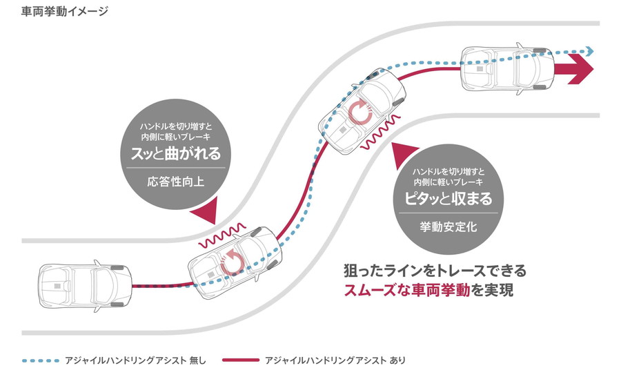 旋回に入る際の応答性や旋回中のライントレース性をより高めるハンドリング支援システム、アジャイルハンドリングアシストも装備する