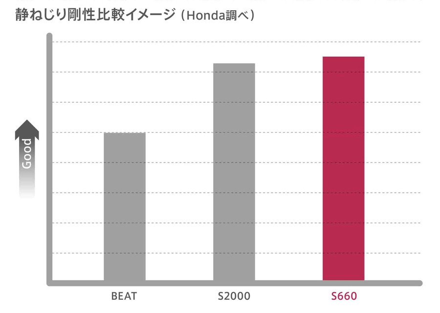 ビートはもちろん、S2000を超えるねじり剛性の高さを備えるS660