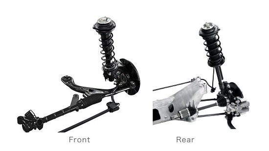 サスペンションは、フロントがマクファーソンストラット、リアがデュアルリンクストラットとなる