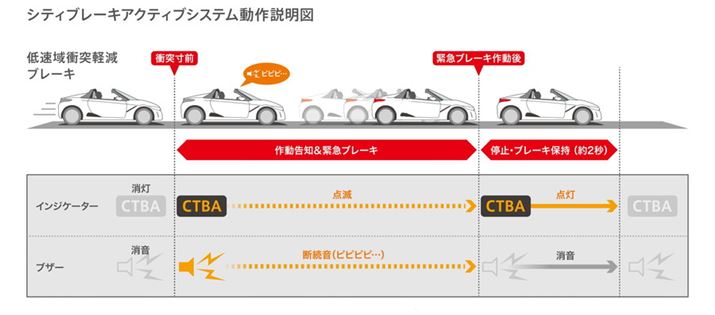 時速5〜30kmで作動する衝突被害軽減自動ブレーキのシティブレーキアクティブシステムをオプションで用意する
