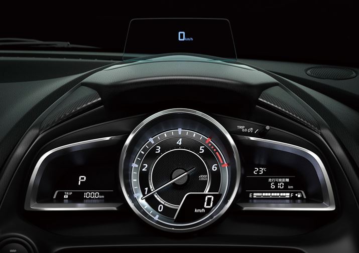メーターはアナログのタコメーターと、デジタルのスピードメーターを採用。エンジンをONにすると、メーターフードの前方に車速やナビのルートなどが表示される「アクティブ・ドライビング・ディスプレイ」が立ち上がる