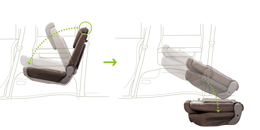 3列目シートを左右独立して床下に収納できるマジックゲート。片側だけ収納すれば、テールゲートから乗り込んで運転席まで移動も可能だ