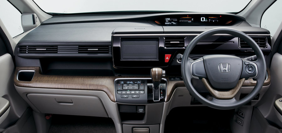 ステップワゴンは、シフトレバーやダッシュボードに貼られた木目調パネルによって、明るいイメージを演出している