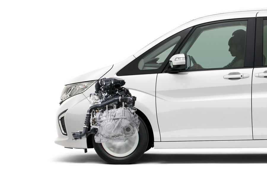 CVTと組み合わせることでミニバンの大柄なボディを軽快に引っ張る、1.5リッター直噴VTECターボ・エンジンを搭載