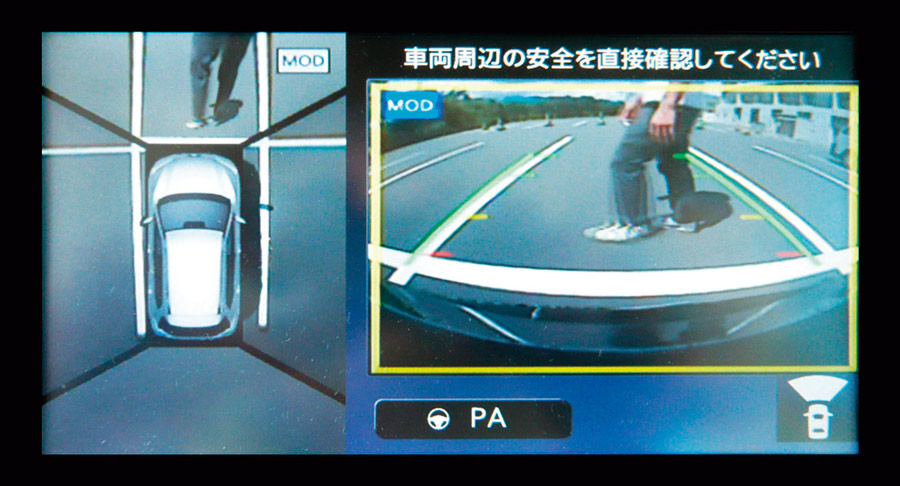 ドライバーの目の前にあるカラフルなファインビジョンメーターをのぞき込むと、ハイブリッドシステムが、どのエネルギーを使っているのかがわかる。表示を切り替えれば、前方の安全(衝突被害軽減自動ブレーキ)から左右の安全(車線逸脱警報)、斜め後方の安全(後側方車両検知警報)を警戒するシステムの作動状況を確認できる。アラウンドビューモニターやインテリジェントパーキングアシストなど、先進の運転支援システムが満載されているのも魅力だ。単眼カメラを使用する衝突被害軽減自動ブレーキは、クルマだけでなく歩行者を検知する機能もあるなど、なかなに高機能だ。ただし、前走車を追従する、全車速追従機能がないのは残念なところだ。