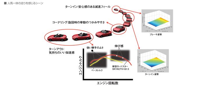 ブレーキ、エンジン、ハンドリングなどなどを通じてドライバーの意思がクルマが伝わり、挙動のつかみやすさや心地よい加速感が、人馬一体につながる