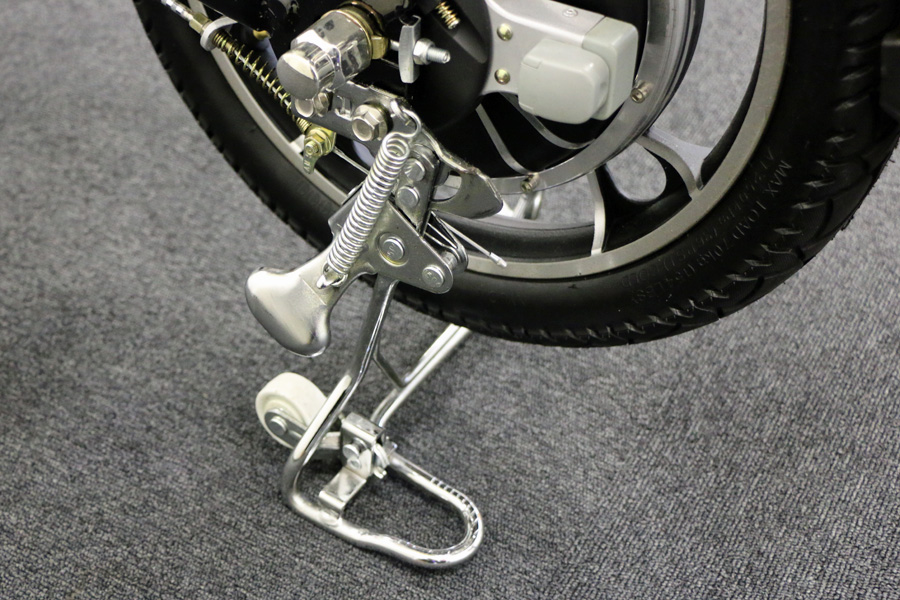 自転車と同じような仕様のスタンドにはローラーが付いており、ローラーが転がるので力をかけることなくスタンドを立てることができる