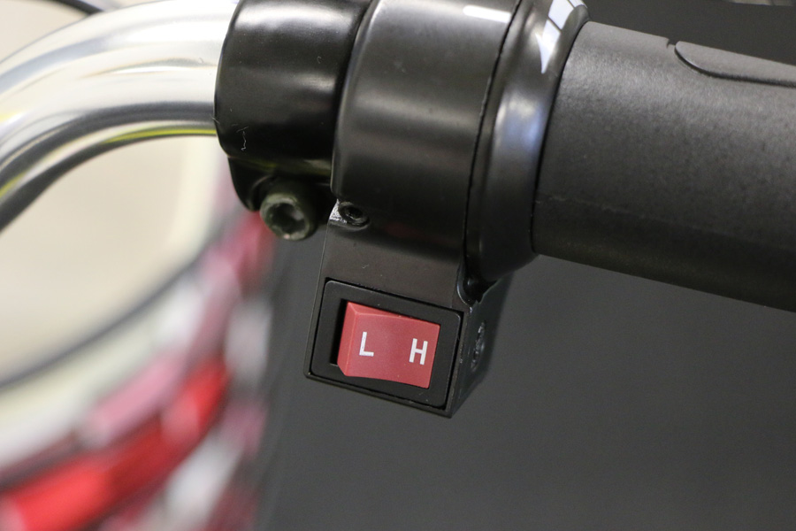 右手のアクセルグリップ下にあるスイッチを「L」に設定すれば、最高速度が制限される