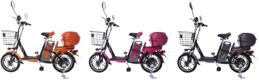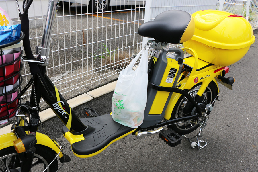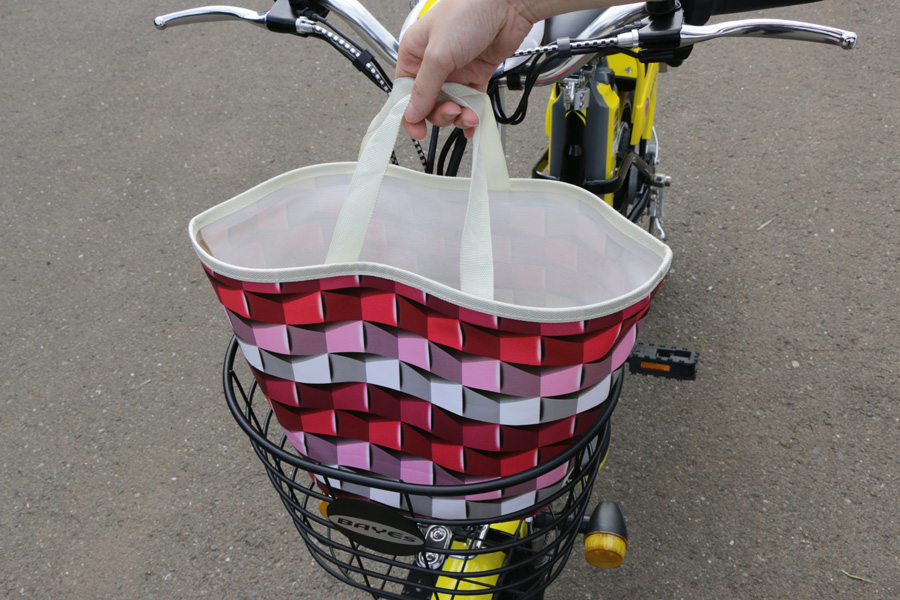 “日常に気軽に活用できるバイク”という位置付けの「bycle P3」には、買い物の足としても便利な工夫が施されている。買い物時にそのまま持っていけるフロントのカゴや袋をぶら下げられるフック、たくさんの荷物を入れるためのオプションなどを紹介しておく。