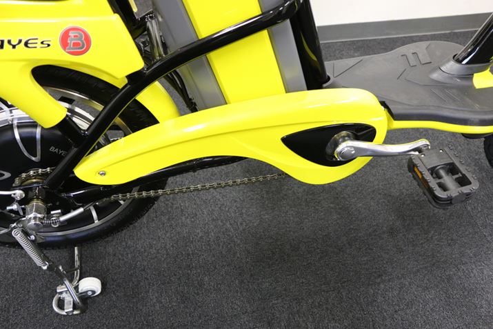 足置き場の両サイドにペダルを配置しており、自転車と同じくチェーンで後輪を動かせる。ペダルの活用法については後で説明