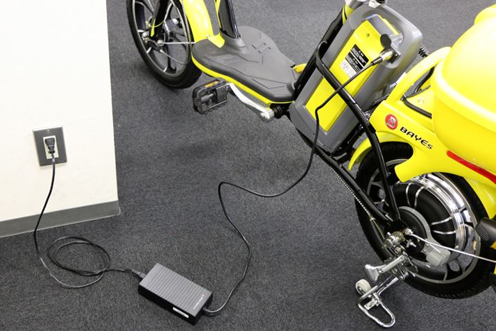バッテリーにはリチウムイオン電池を採用し、容量は12Ah。家庭にある100V電源から充電できる。バッテリー残量ゼロの状態から満充電にするには6〜8時間かかるが、継ぎ足し充電ができるので通常は1〜4時間程度で済む