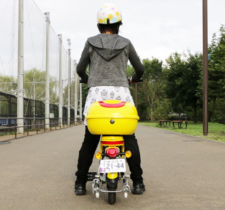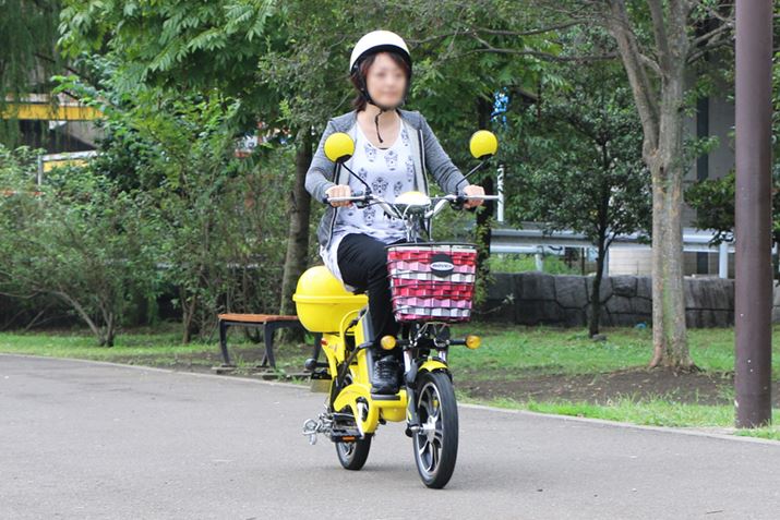 ハンドル操作は軽く、扱いやすさもバッチリ。ただ、試乗してくれた女性は自転車にしか乗ったことがないということで、慣れるまでUターンがうまくできなかった。その理由は、ハンドルの切れ角。バイクでは一般的な切れ角だが、自転車のように大きく振ることはできないため、自転車感覚での乗ろうとすると少々戸惑うかもしれない