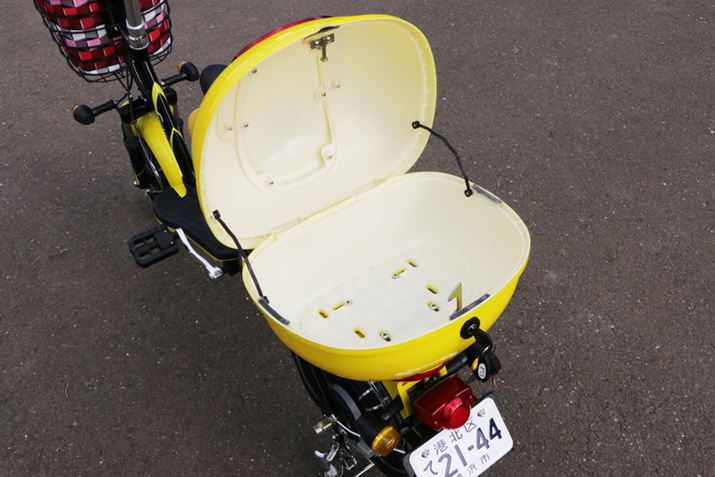 リアボックスはオプションだが、大量の荷物を運ぶ頻度が高いようなら用意したほうがよいだろう。鍵をかけることもできるので、安全性も高い。メーカー希望小売価格は3,800円(税別)