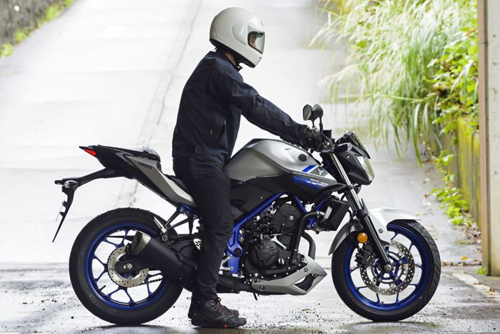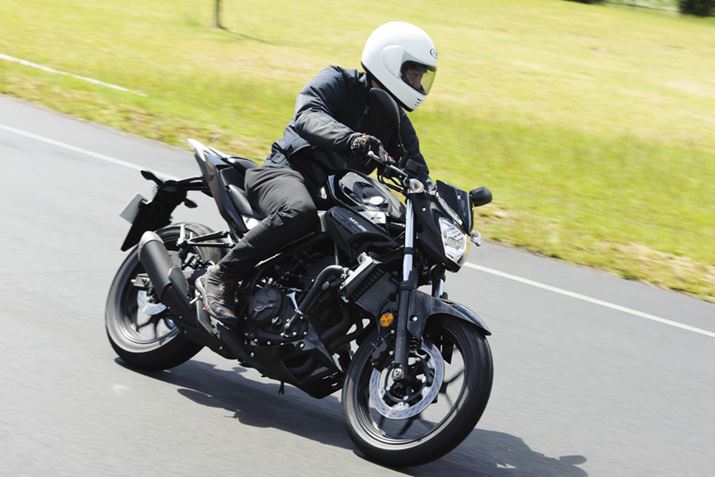 「MT-25/MT-03」の動力性能は、2014年末に発売されたフルカウルモデル「YZF-R25/YZF-R30」がベースとなっている。大きく変化した点は、カウルが装備されていないこととハンドルをやや手前上方に配置していること。ハンドルのポジションが変わったことで上体の起きたアップライトなスタイルとなり、視界が広く、開放感のあるライディングができるようになった。