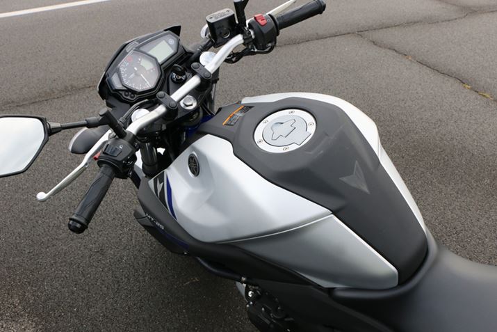 ハンドル位置が「YZF-R25/YZF-R30」より手間に約19mm、そして約39mm高くなった。上体が起きた姿勢で乗れるため前方が見やすく、あまり速度の出ない街中を走るのに適している。また、肩の力を抜きやすいので初心者でも自然なハンドリングが楽しめるだろう