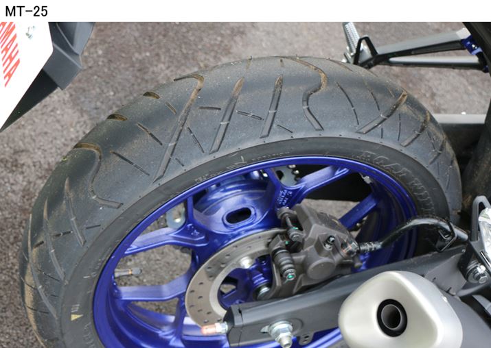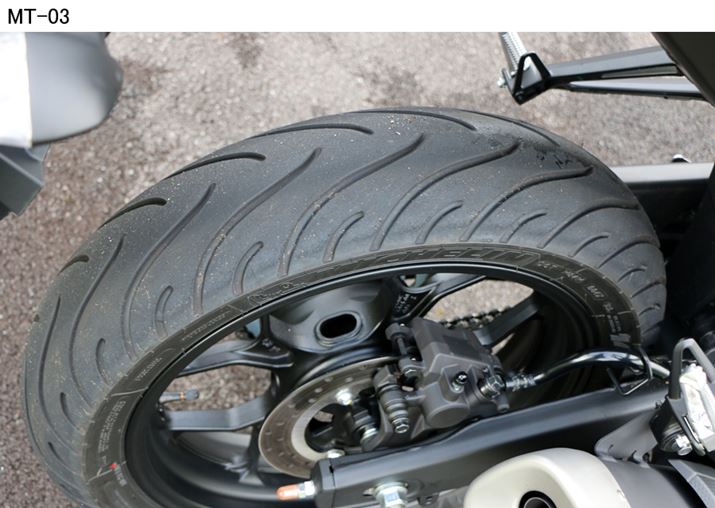 排気量が70cc大きい「MT-03」のほうが、剛性の高いタイヤを装着している