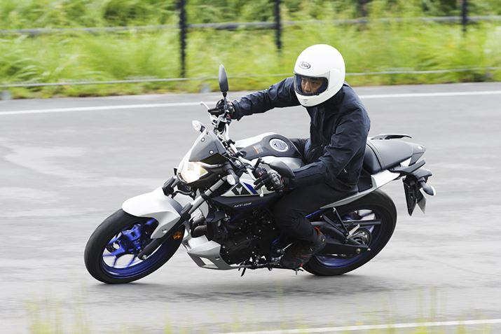まずは、「MT-25」を試乗。アップダウンがあり、大小のカーブが連続するコースを走行する。街乗りをイメージできるように、交差点を模したセクションや長い坂も用意されていた。