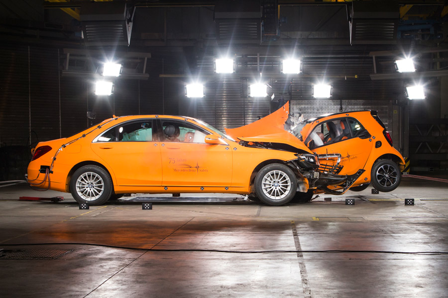 衝突エネルギーの大きい大型車とのオフセット衝突でも、室内の形状は保たれる