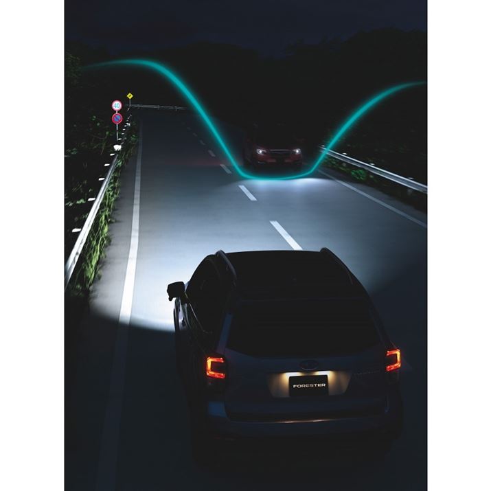安全装備の充実も見逃すことができない。そのひとつがアイサイトのステレオカメラの情報をもとに、ヘッドランプの照射位置を調整する「アダプティブドライビングビーム」だ