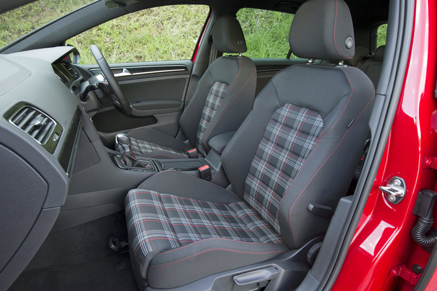 ゴルフ GTIのシートはクロス素材が標準。柄は伝統のチェック