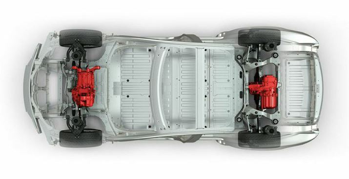 前輪にもモーターを追加し、標準モデルでは、システム合計は311kW(422馬力)、P85Dではシステム合計は397kW(539馬力)の大パワーを誇る