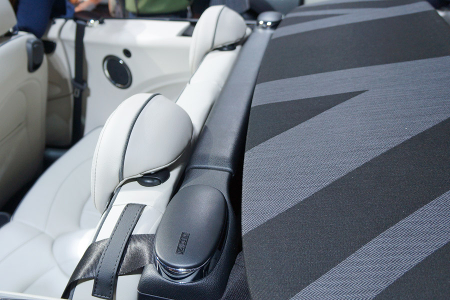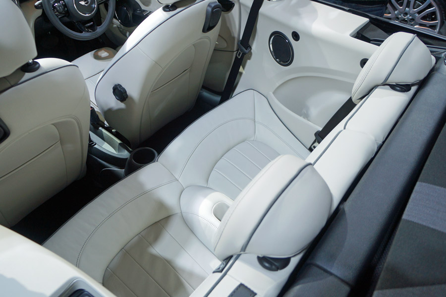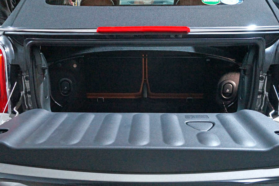ボディの華やかさに目が行くが、後席では、ニールームが約4cm、ショルダールームが約3cmそれぞれ拡張され、大人4人がきちんと座ることができる居住性が確保されている。また、ラゲッジスペースも前モデルとなる2代目MINIコンバーチブルと比較して25%もの容量アップを実現しており、ソフトトップを閉じた状態で215リッター、開いた場合でも160リッターという、オープンボディとしてはかなり高い収納能力を備えている。