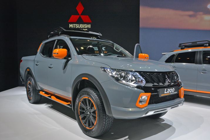 三菱は、アウトドア/レジャーシーンをイメージした2台を展示。トライトンをベースとしたL200 GEOSEEKコンセプト