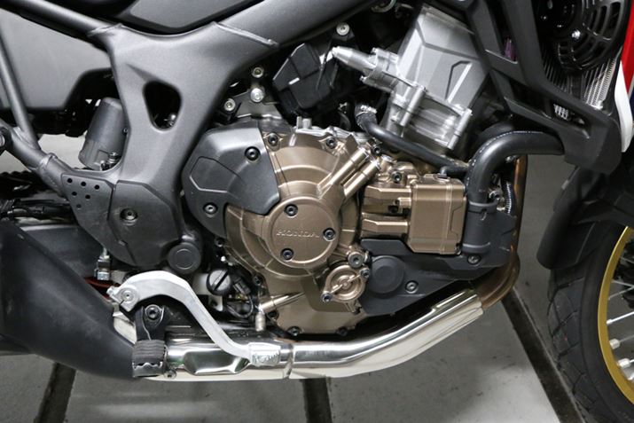 今回発売されたCRF1000L Africa Twinも、2013年から参戦を再開したダカールラリーを走る「CRF450 RALLY」のイメージを継承。高速での風圧を低減する大型のフェアリングを備え、足回りも前後フルアジャスタブルと本格的な性能を与えられている。前モデルとなる「XRV750」はV型エンジンで排気量は750ccだったが、CRF1000L Africa Twinは1,000ccの直列2気筒に変更。排気量がアップしたことと、レーシングマシン「CRF」シリーズのノウハウを生かしたユニカムバルブトレイン機構で、最高出力は「XRV750」の43kWから68kWへと大きく向上した。また、270°クランクの採用によりトラクション性能も優れる。