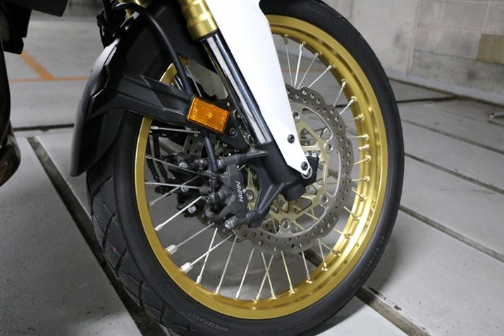 前輪は、21インチのホイールにΦ310mmのダブルディスクと4ポッドキャリパーを組み合わせたブレーキを装備。ABS機構も標準で搭載している