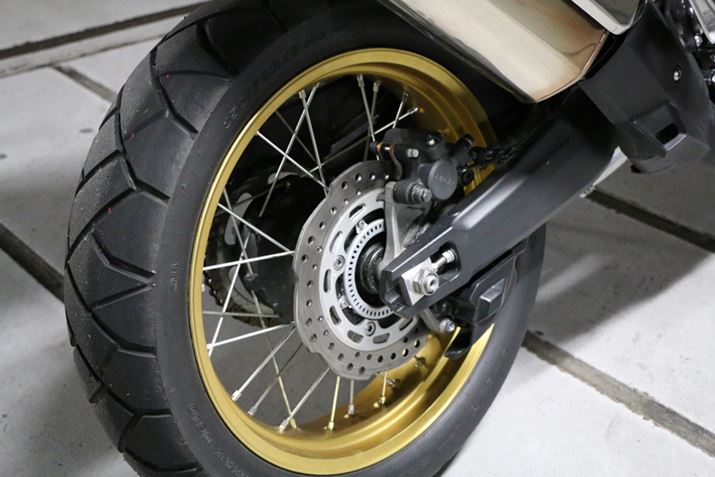リアホイールは一般的なオフロードモデルと同様の18インチで、ブレーキはΦ256mmのシングルディスク。後輪のABSは状況によりキャンセルもできる