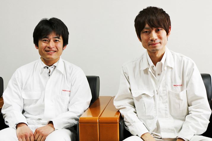 DCTと電子制御ユニットの開発を手掛けた、本田技術研究所 二輪R&Dセンターの伊藤飛鳥さん(左)と中村公紀さん(右)