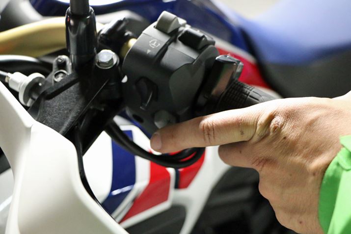 「DCTでは変速の際、唐突にギアがつながって挙動がギクシャクするのを防ぐため、半クラッチ的にわずかにクラッチを滑らせる制御を行っています。ただ、オフロードではアクセル操作で後輪を滑らせたり、車体を起こすといった操作を行うので、0.1秒以下のクラッチの滑りでも操作の遅れになってしまう。Gスイッチは、ボタン1つでクラッチの滑りを減らし、よりダイレクトな操作感を実現します」(伊藤)。