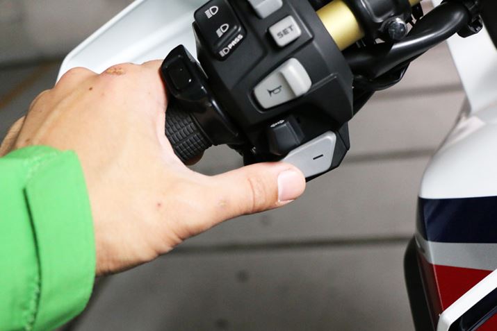 さらに、アフリカツインには駆動力が強すぎてタイヤが滑ってしまった場合に駆動力を調整して滑りを抑制するトラクションコントロール(ホンダでは「ホンダ・セレクタブル・トルクコントロール」と呼ぶ)も搭載されている。従来のバイクで後輪が滑ってしまうと、ライダーがアクセルとクラッチでトラクションをコントロールする必要があったが、そうした制御もマシンが行ってくれるのだ。しかし、オフロード走行では後輪を滑らせながら前に進ませたいという状況も存在する。そのため、CRF1000L Africa Twinではトルクコントロールの効き方を3段階で選択できるようにし、場合によってはOFFにもできるようにしたという。