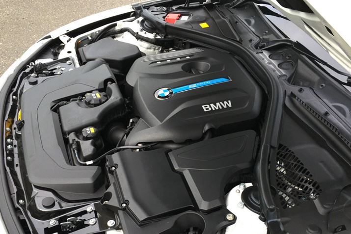写真はFRレイアウトの高性能PHVセダン、BMW「330e」のパワーユニット。PHVはメカニズムが多様で、さまざまな特徴のクルマが、それぞれに適した機構が搭載されている